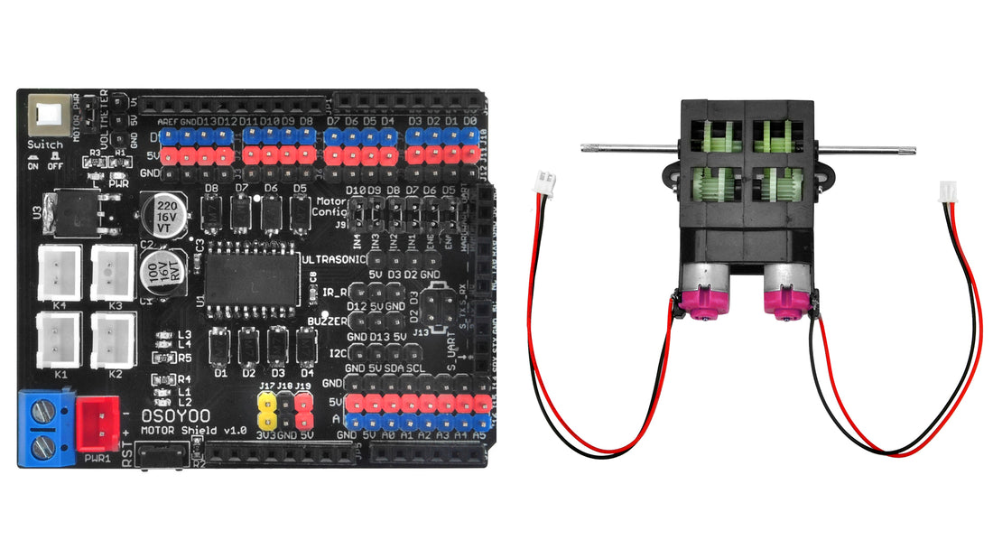 25セット---OSOYOO Arduino用 モデル 3 V2.0 用 モータードライバシールド、モーター、ギア