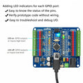 GPIO status LED -> LED on if GPIO outputs/inputs high level, LED off if GPIO outputs/inputs low level.Making it a useful tool for troubleshooting and debugging I/O without the need for a meter.