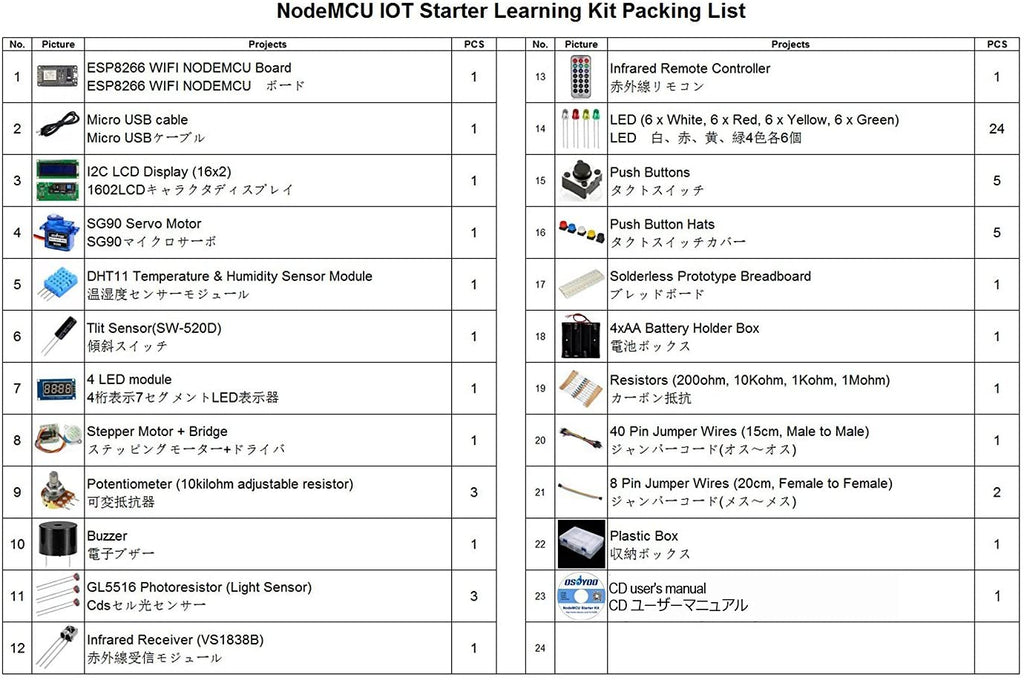 OSOYOO(オソヨー) ESP8266ではじめるNodeMCU IoT MQTT プログラミング 学習キット 実験キット 初心者演習用電子パーツセット (NodeMCU IoT*50個セット)